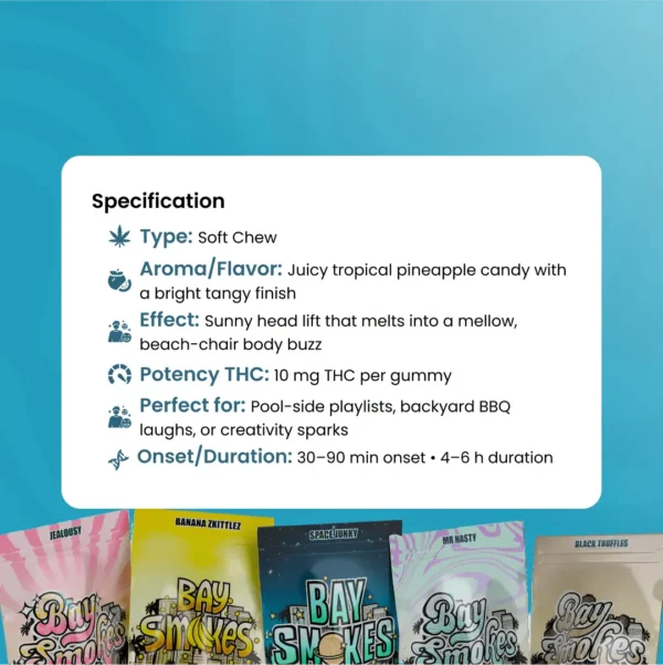 Each gummy is infused with 10mg of Delta-9 THC, derived from organically grown, non-GMO hemp, ensuring a high-quality, consistent experience.