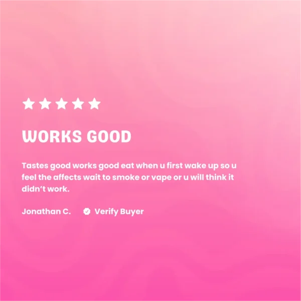 Specifications: Type: Soft Chew Flavor: Sweet lychee, tangy passion-fruit, tropical-candy finish Effect: Euphoric lift flowing into soothing, full-body calm Potency THC: 10 mg per gummy Perfect for: Creativity, Evening Relaxation, Movies Onset/Duratiation: 30 – 90 min onset • 4 – 6 h Read More
