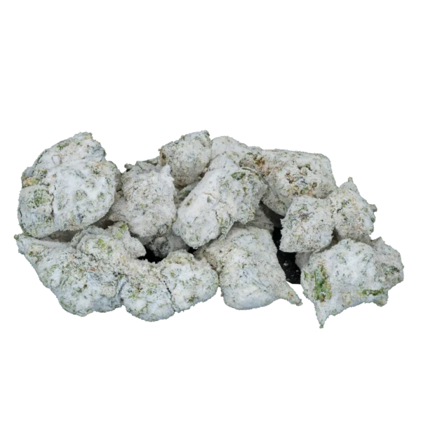 Our THCa Snowballs Smalls are meticulously handcrafted using the same premiumbm THCa flower available at $45 per eighth. Each nug is lightly misted with distilled water—no chemicals or additives involved—before being rolled in ultra-pure THCa isolate to maximize potency and achieve their signature frosted appearance. This process mirrors the renowned Moon Rocks method, ensuring superior quality and enhanced effects.